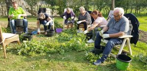 Zittend hop plukken, heel ontspannend